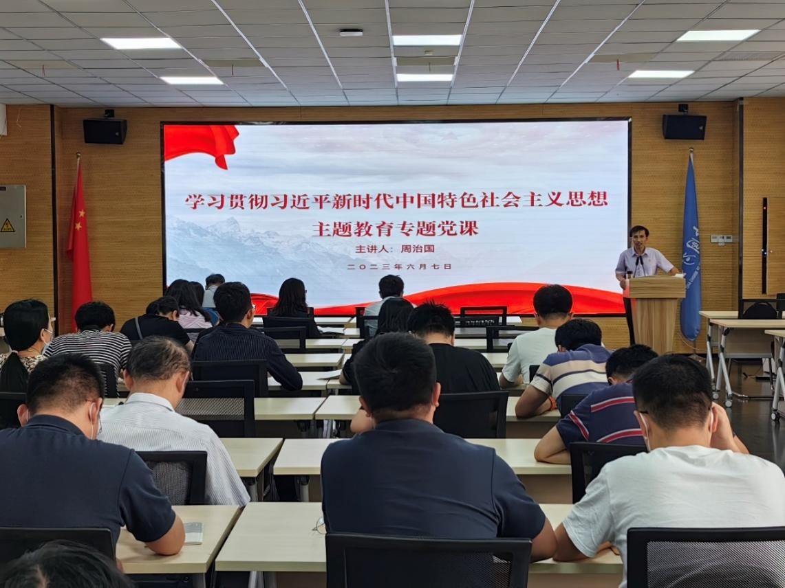 2023年6月7日下午,计算机学院在计A501开展学习贯彻习近平新时代中国特色社会主义思想主题教育专题党课,院党委书记周治国主讲,学院全体教职工参加。