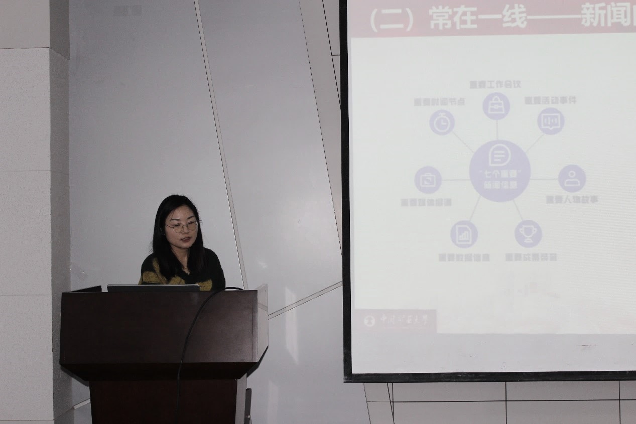 李居铭老师结合自己“常在一线”的经验,向同学们传授了有关新闻内容挖掘的方法以及提高新闻写作水平的技巧。李老师强调,要深入教书育人和学校改革发展一线,在实际工作中发现新闻事件和典型。她勉励现场师生要以帮助学校发出矿大声音、讲好矿大故事、展示好矿大形象为目标进行新闻工作。在提到如何做好新闻宣传工作的问题时,她指出要牢牢把握好五条线——围绕主线、常在一线、对好标线、严守底线、践行站线。李老师将自己的切身经历与理论知识相结合为同学们展开了一堂别开生面的培训课,现场师生受益匪浅。