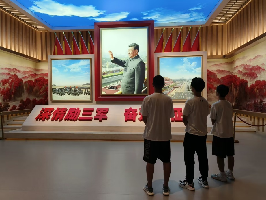 实践团成员们满怀着激动和敬仰之心,参观了新时代国防和军队建设成就主题展,通过八个小展厅进一步加深了对政治建军、改革强军、科技强军、人才强军、依法治军的认识,参观了人民军队自建军以来的各种武器装备以及各种军舰、坦克等模型。除此之外,实践团成员们还一同观看了建国七十周年阅兵、朱日和阅兵和南海海域海上阅兵等重大场景的录像,展现了人民军队忠诚维护核心、矢志奋斗强军的昂扬风貌。