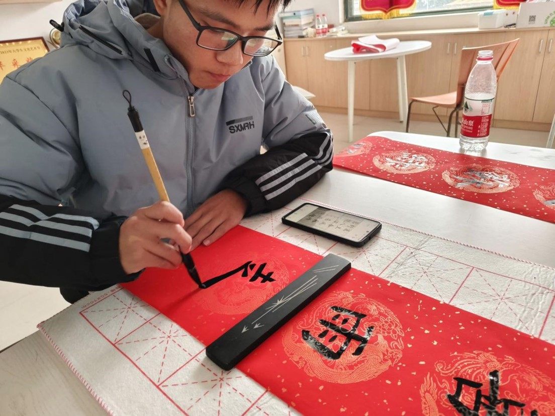 活动期间,参赛同学们在红纸上挥洒浓墨,隶书的有折无转、楷书的齐而不拘、草书的笔画连绵、行书的悠游流转,在汉字的结构与线条之美中传递出了浓郁的元旦祝福。参赛同学们纷纷表示,在书写对联的过程中,他们将对新春的美好祝福汇于手中,跃于纸上。