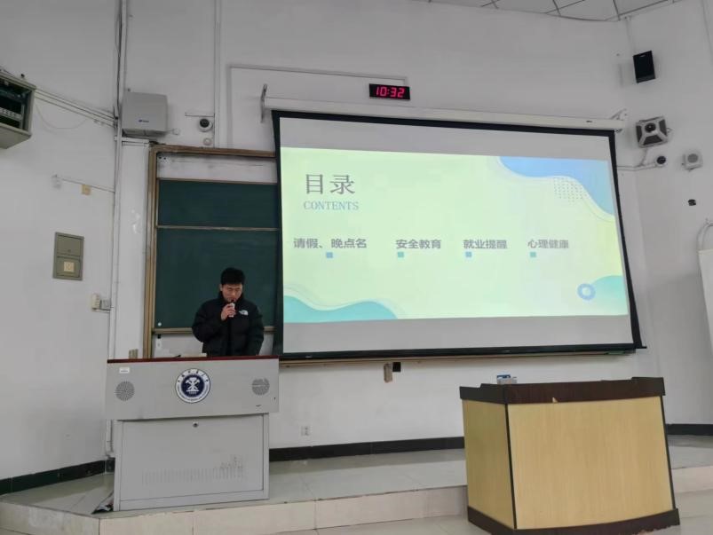 会议伊始,付德权老师重点强调了请假、离校、实习、晚点名签到的注意事项。随后,他对安全知识进行重点讲解,提醒同学们注意实验室、宿舍安全卫生,注意交通安全,确保财务安全,拉紧消防安全警戒线。之后,他分享了计算机学院2024届研究生就业情况,并针对就业政策进行了解读,提醒毕业班同学及时关注求职信息,论文工作两手抓。最后,张菁老师强调了网络安全问题,讲解了心理健康知识,介绍了学校心理中心2024年春季学期咨询安排和校外心里热线。